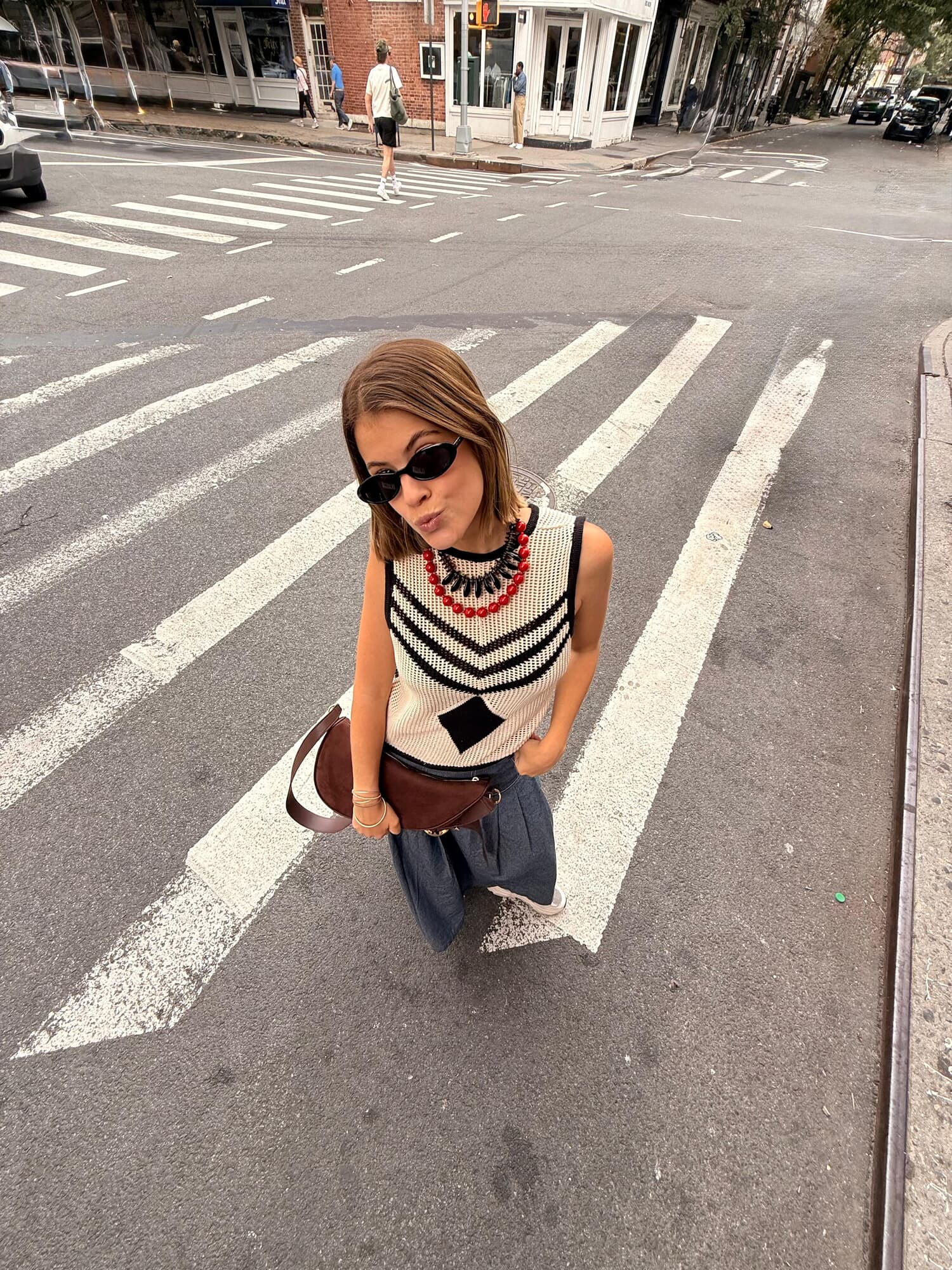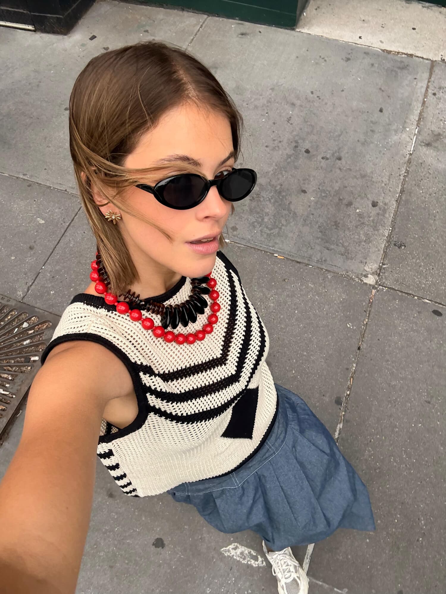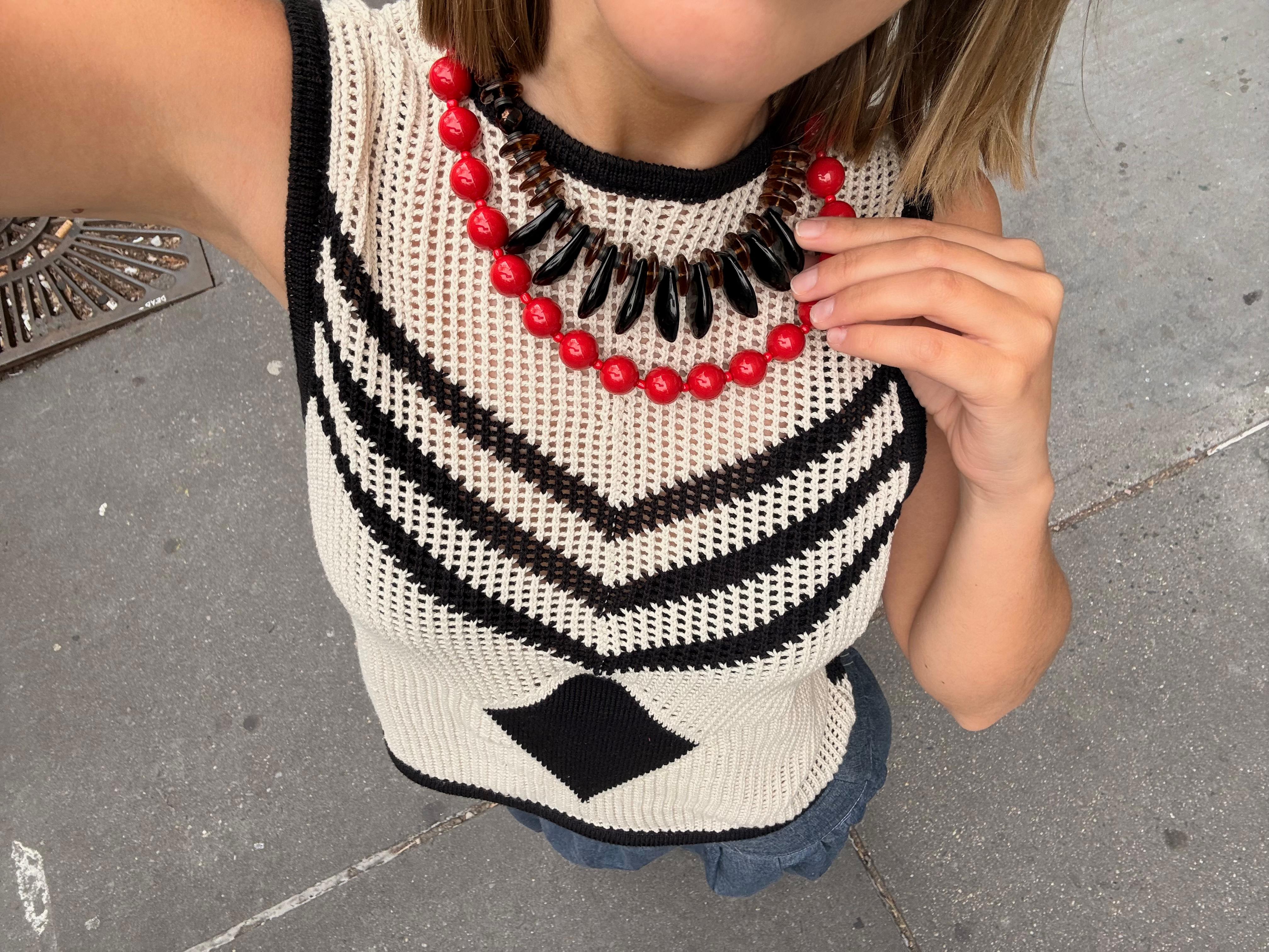 Chalequito top calado con diseño de rayas diagonales. Para usar solo como musculosa o con una tshirt o camisa abajo, queda muy cool. Se puede usar de ambos lados. Diseñado y confeccionado en Uruguay <3. Composición: 50% algodón 50% acrílico.